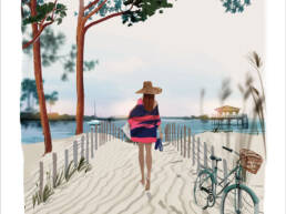 Ses œuvres, souvent inspirées par ses voyages et son environnement urbain, captivent par leur capacité à raconter en une seule image. Elles sont construites autour d’un concept simple : dans tout paysage se cachent des histoires et celles-ci ne demandent qu’à accrocher, intriguer le spectateur. Avec un traitement graphique rappelant la ligne claire et une énergie vibrante, chaque scène invite le spectateur à s’immerger dans un univers narratif unique et un style définitivement contemporain. Que ce soit une bulle échappant d’une fenêtre ou des personnages intrigants dans un paysage urbain, chaque détail invite à l’imagination. Intrigante ou drôle, inquiétante, loufoque ou romantique cette histoire appartient à chacun.