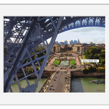 Ses œuvres, souvent inspirées par ses voyages et son environnement urbain, captivent par leur capacité à raconter en une seule image. Elles sont construites autour d’un concept simple : dans tout paysage se cachent des histoires et celles-ci ne demandent qu’à accrocher, intriguer le spectateur. Avec un traitement graphique rappelant la ligne claire et une énergie vibrante, chaque scène invite le spectateur à s’immerger dans un univers narratif unique et un style définitivement contemporain. Que ce soit une bulle échappant d’une fenêtre ou des personnages intrigants dans un paysage urbain, chaque détail invite à l’imagination. Intrigante ou drôle, inquiétante, loufoque ou romantique cette histoire appartient à chacun.