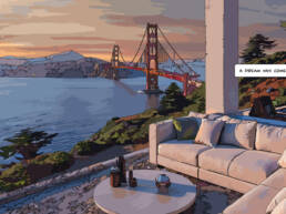 Ses œuvres, souvent inspirées par ses voyages et son environnement urbain, captivent par leur capacité à raconter en une seule image. Elles sont construites autour d’un concept simple : dans tout paysage se cachent des histoires et celles-ci ne demandent qu’à accrocher, intriguer le spectateur. Avec un traitement graphique rappelant la ligne claire et une énergie vibrante, chaque scène invite le spectateur à s’immerger dans un univers narratif unique et un style définitivement contemporain. Que ce soit une bulle échappant d’une fenêtre ou des personnages intrigants dans un paysage urbain, chaque détail invite à l’imagination. Intrigante ou drôle, inquiétante, loufoque ou romantique cette histoire appartient à chacun.