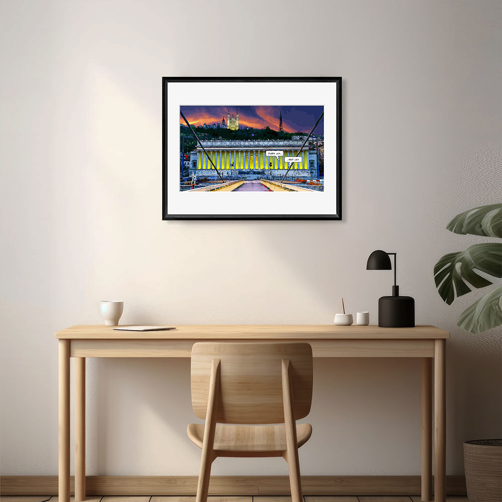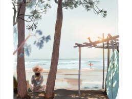 Ses œuvres, souvent inspirées par ses voyages et son environnement urbain, captivent par leur capacité à raconter en une seule image. Elles sont construites autour d’un concept simple : dans tout paysage se cachent des histoires et celles-ci ne demandent qu’à accrocher, intriguer le spectateur. Avec un traitement graphique rappelant la ligne claire et une énergie vibrante, chaque scène invite le spectateur à s’immerger dans un univers narratif unique et un style définitivement contemporain. Que ce soit une bulle échappant d’une fenêtre ou des personnages intrigants dans un paysage urbain, chaque détail invite à l’imagination. Intrigante ou drôle, inquiétante, loufoque ou romantique cette histoire appartient à chacun.