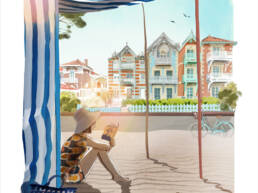 Ses œuvres, souvent inspirées par ses voyages et son environnement urbain, captivent par leur capacité à raconter en une seule image. Elles sont construites autour d’un concept simple : dans tout paysage se cachent des histoires et celles-ci ne demandent qu’à accrocher, intriguer le spectateur. Avec un traitement graphique rappelant la ligne claire et une énergie vibrante, chaque scène invite le spectateur à s’immerger dans un univers narratif unique et un style définitivement contemporain. Que ce soit une bulle échappant d’une fenêtre ou des personnages intrigants dans un paysage urbain, chaque détail invite à l’imagination. Intrigante ou drôle, inquiétante, loufoque ou romantique cette histoire appartient à chacun.