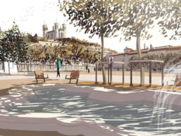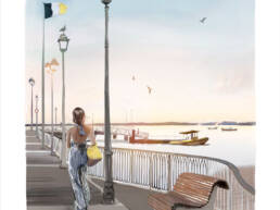 Ses œuvres, souvent inspirées par ses voyages et son environnement urbain, captivent par leur capacité à raconter en une seule image. Elles sont construites autour d’un concept simple : dans tout paysage se cachent des histoires et celles-ci ne demandent qu’à accrocher, intriguer le spectateur. Avec un traitement graphique rappelant la ligne claire et une énergie vibrante, chaque scène invite le spectateur à s’immerger dans un univers narratif unique et un style définitivement contemporain. Que ce soit une bulle échappant d’une fenêtre ou des personnages intrigants dans un paysage urbain, chaque détail invite à l’imagination. Intrigante ou drôle, inquiétante, loufoque ou romantique cette histoire appartient à chacun.