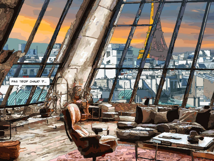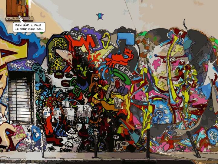 Ses œuvres, souvent inspirées par ses voyages et son environnement urbain, captivent par leur capacité à raconter en une seule image. Elles sont construites autour d’un concept simple : dans tout paysage se cachent des histoires et celles-ci ne demandent qu’à accrocher, intriguer le spectateur. Avec un traitement graphique rappelant la ligne claire et une énergie vibrante, chaque scène invite le spectateur à s’immerger dans un univers narratif unique et un style définitivement contemporain. Que ce soit une bulle échappant d’une fenêtre ou des personnages intrigants dans un paysage urbain, chaque détail invite à l’imagination. Intrigante ou drôle, inquiétante, loufoque ou romantique cette histoire appartient à chacun.