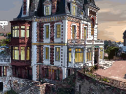 Ses œuvres, souvent inspirées par ses voyages et son environnement urbain, captivent par leur capacité à raconter en une seule image. Elles sont construites autour d’un concept simple : dans tout paysage se cachent des histoires et celles-ci ne demandent qu’à accrocher, intriguer le spectateur. Avec un traitement graphique rappelant la ligne claire et une énergie vibrante, chaque scène invite le spectateur à s’immerger dans un univers narratif unique et un style définitivement contemporain. Que ce soit une bulle échappant d’une fenêtre ou des personnages intrigants dans un paysage urbain, chaque détail invite à l’imagination. Intrigante ou drôle, inquiétante, loufoque ou romantique cette histoire appartient à chacun.