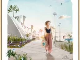 Ses œuvres, souvent inspirées par ses voyages et son environnement urbain, captivent par leur capacité à raconter en une seule image. Elles sont construites autour d’un concept simple : dans tout paysage se cachent des histoires et celles-ci ne demandent qu’à accrocher, intriguer le spectateur. Avec un traitement graphique rappelant la ligne claire et une énergie vibrante, chaque scène invite le spectateur à s’immerger dans un univers narratif unique et un style définitivement contemporain. Que ce soit une bulle échappant d’une fenêtre ou des personnages intrigants dans un paysage urbain, chaque détail invite à l’imagination. Intrigante ou drôle, inquiétante, loufoque ou romantique cette histoire appartient à chacun.