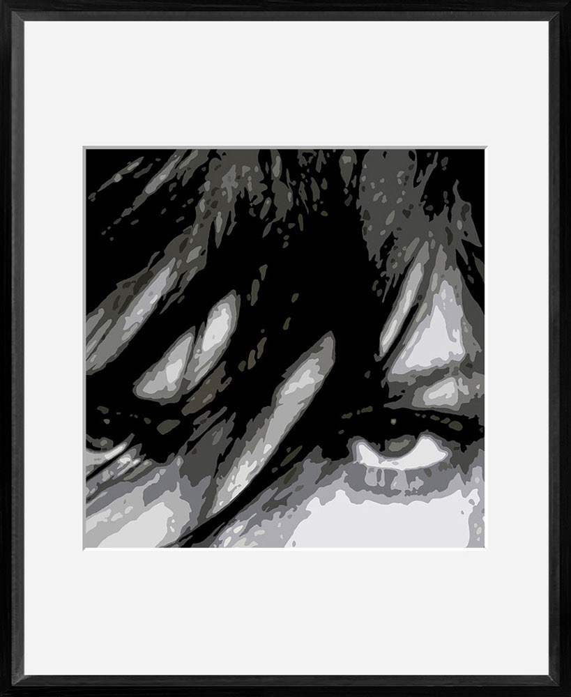 Dans ses oeuvre d’art numérique le thème est immuable : la femme dans tous ses états. L’ artiste contemporaine française la montre souvent offerte dans une nudité généreuse et sensuelle, torturée et disproportionnée, mais toujours dans une recherche esthétique ou en gros plan, dans ses macro-portraits faits d’aplats colorés.