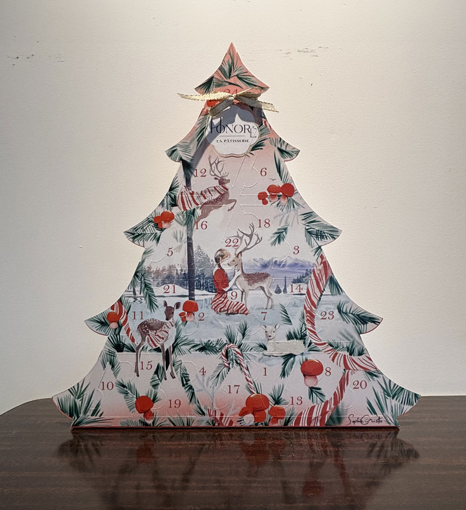 Pour célébrer les fêtes, Sophie Griotto s’est associée à la pâtisserie Honoré pour créer un calendrier de l’Avent exclusif, illustré spécialement pour l’occasion. Une pièce unique, délicate et chaleureuse, qui capture toute la poésie de Noël dans son style si reconnaissable. Produits en quantité ultra limitée, ces calendriers sont déjà presque épuisés : il n’en reste que 9 en cette fin de novembre. Vous pouvez vous le procurer directement sur le site de l’Atelier Contemporain…